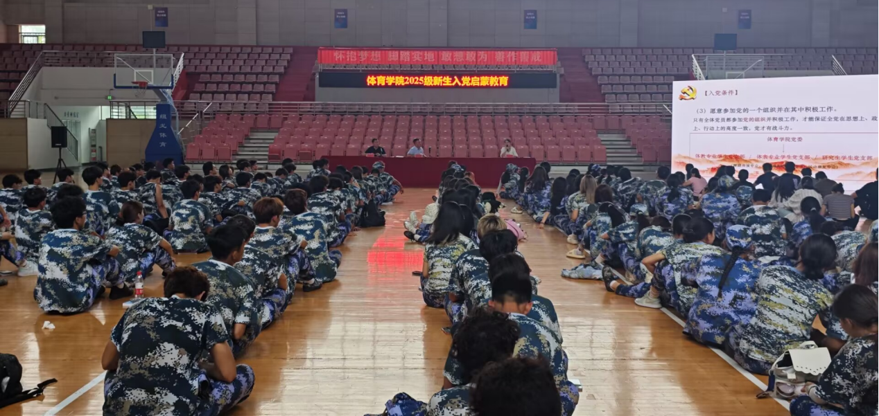 9月24日,体育学院在篮球馆举办2025级新生入党启蒙教育大会,体育学院党委副书记杜百忍、党委秘书方芳和部分学生党支部书记出席会议,全体2025级本科、硕士研究生同学参加会议。会议由体育学院党委副书记杜百忍主持。