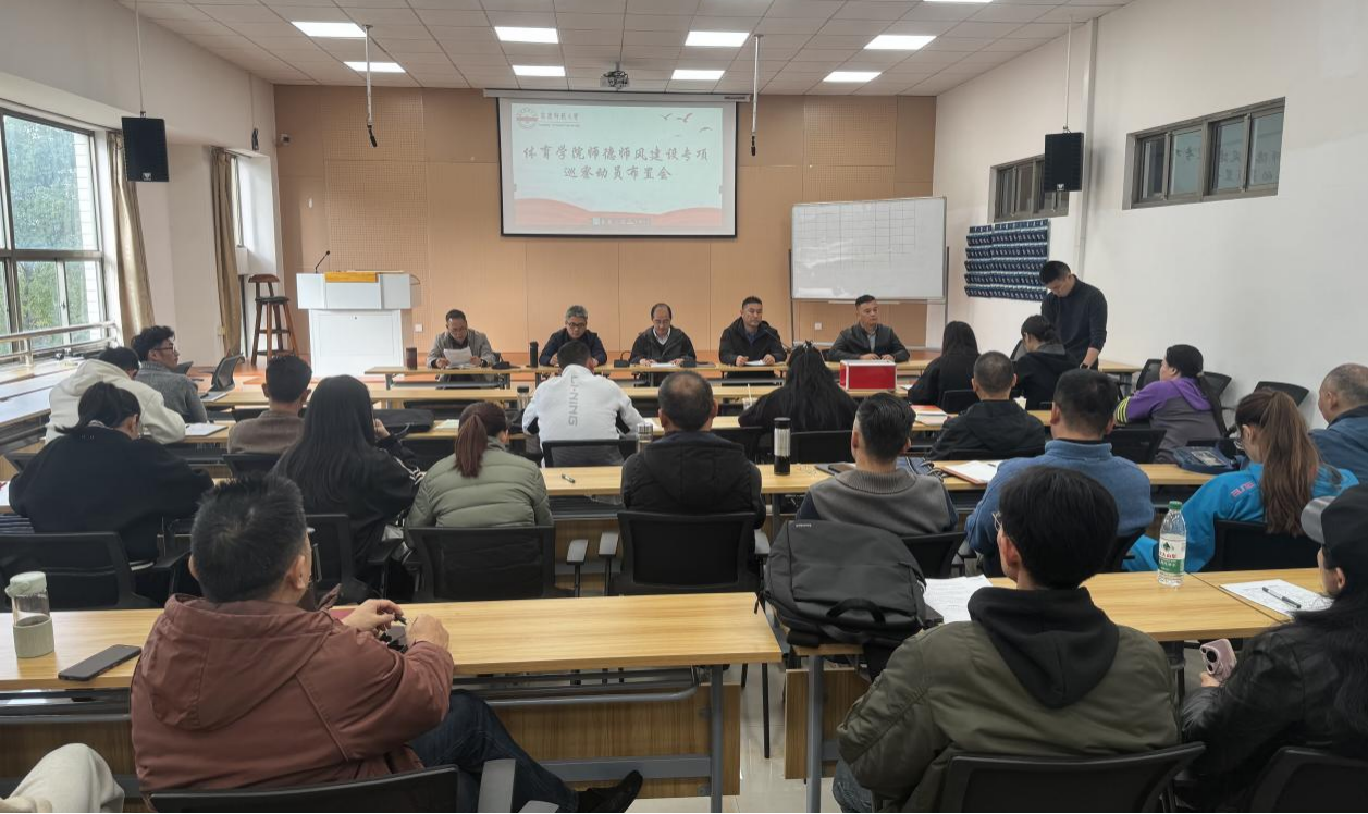 11月12日,体育学院在体育馆多媒体教室召开师德师风建设专项巡察动员布置会。体育学院领导班子、全体教职工参加会议。会议由体育学院党委书记王玮主持。