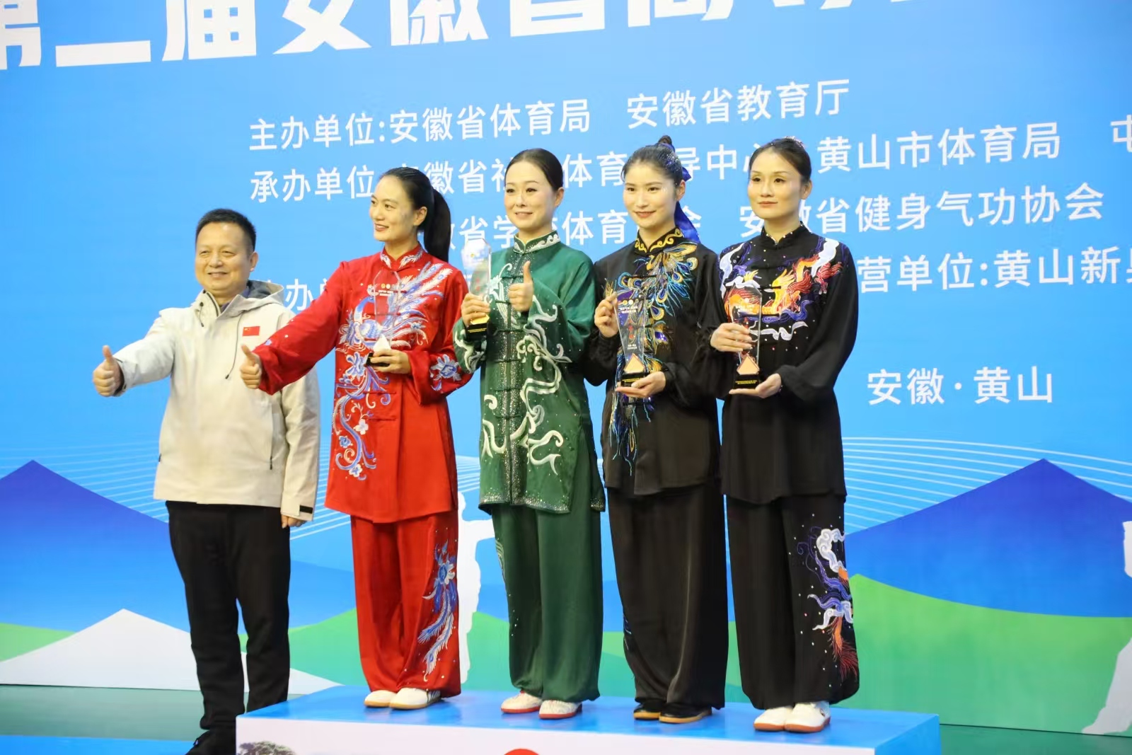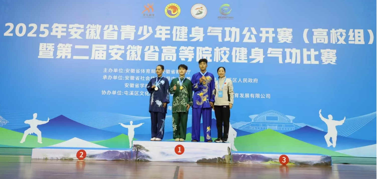 本次赛事由安徽省体育局、安徽省教育厅联合主办,规模空前,共吸引了全省47支代表队、300余名运动员同台竞技,尽显高校健身气功运动的蓬勃活力。我校组建三支代表队参赛,分别为甲组、丙组和教工组。赛场上,运动员们身姿舒展、气韵贯通,动作整齐划一且刚柔并济,以专注姿态诠释健身气功的独特魅力,展现出昂扬向上的精神风貌。最终,我校队伍获得甲组集体4个二等奖、个人2个二等奖、 2个三等奖,丙组集体3个二等奖、 1个三等奖、个人1个一等奖 和3个三等奖,获得教工组集体4个三等奖、个人1个二等奖 和3个三等奖;王秀娟、薛佳雅2位同学和王晶老师获评个人“体育道德风尚奖”,学校代表队获得集体“体育道德风尚奖”。