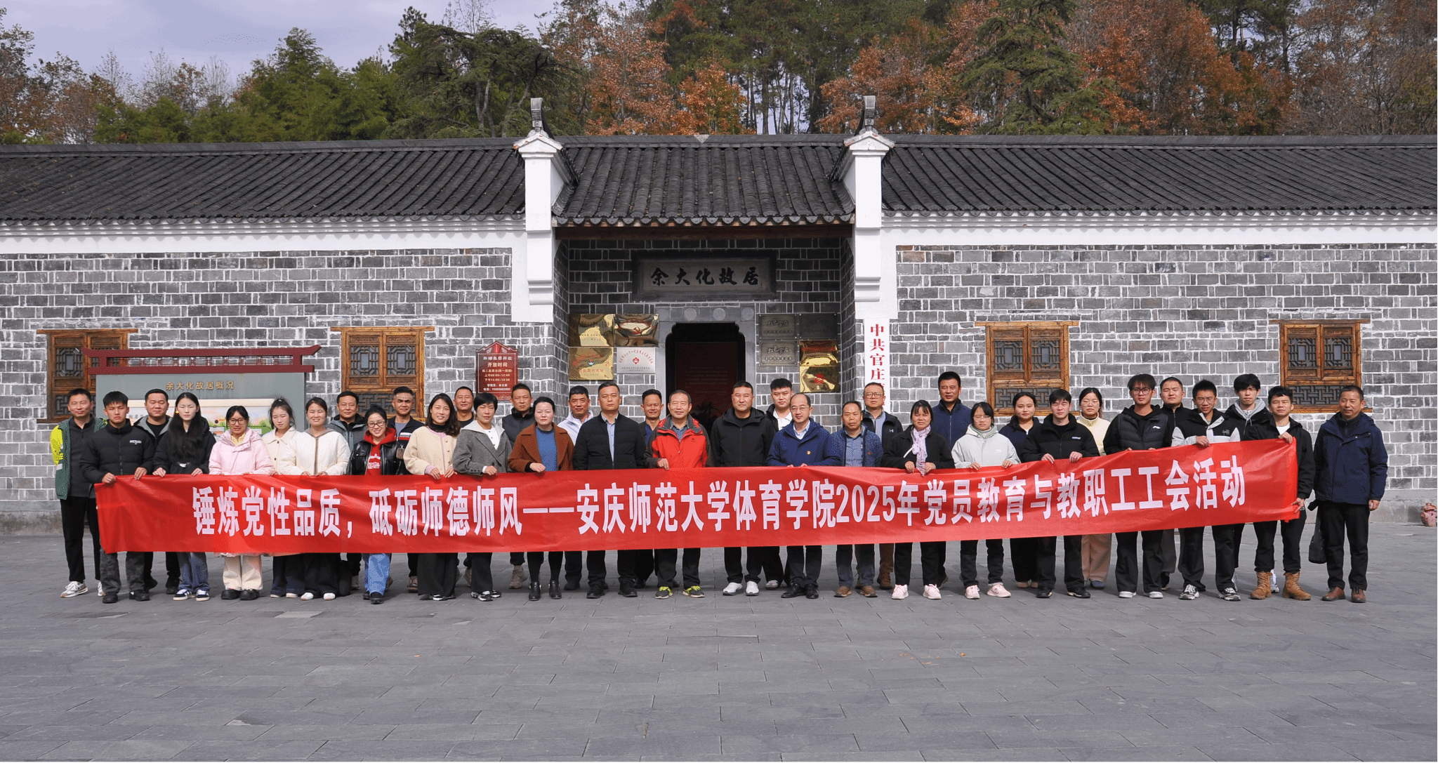 11月23日,体育学院组织师生党员和教职工专程赴安庆市潜山市官庄镇,以“锤炼党性品质,砥砺师德师风”为主题,开展党员教育与教职工工会活动。体育学院党政领导班子、退休老领导老教师、各党支部书记、教研室主任、党员和教职工代表共同参加了活动,旨在强化党员党性修养,深化师德师风建设,进一步凝聚体育学院凝聚力向心力战斗力。