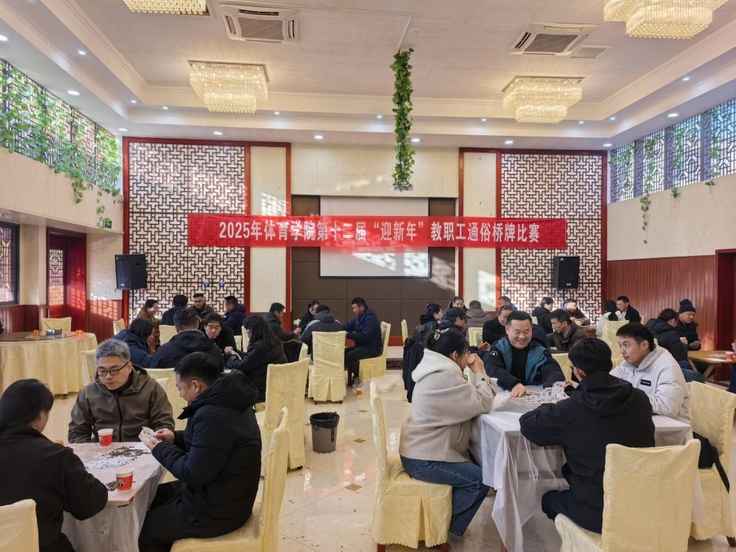12 月 14 日,体育学院分工会组织开展“迎新年”教职工联谊活动。在校工会指导和支持下,体育学院分工会广泛征求教职工意见,举办第十二届“迎新年”教职工通俗桥牌比赛。体育学院全体教职工参加了联谊活动,并邀请离退休干部教师参与活动。