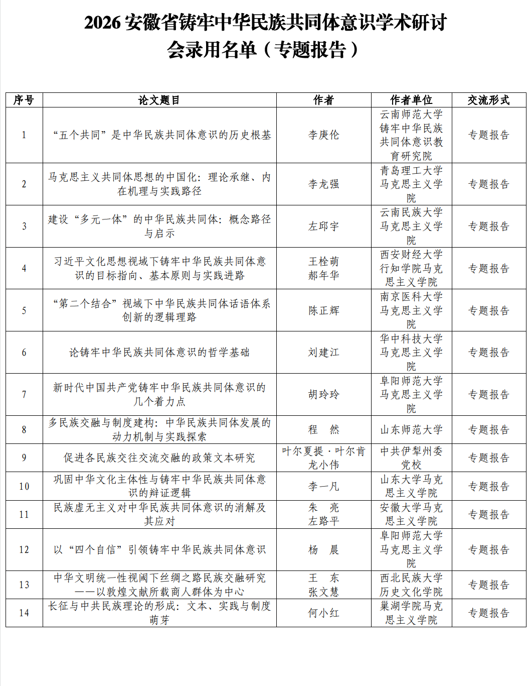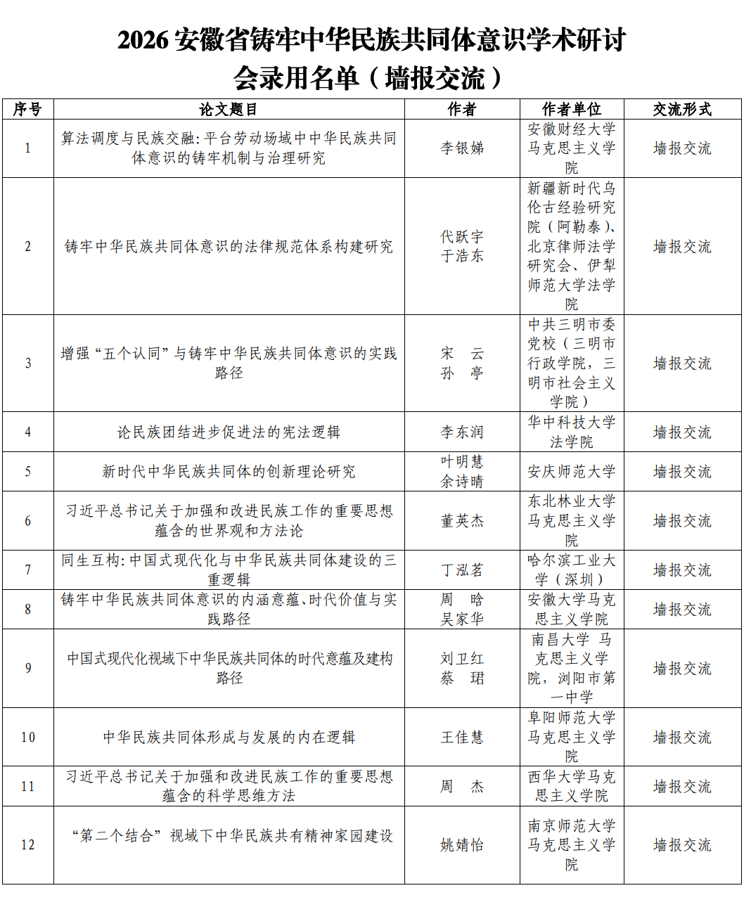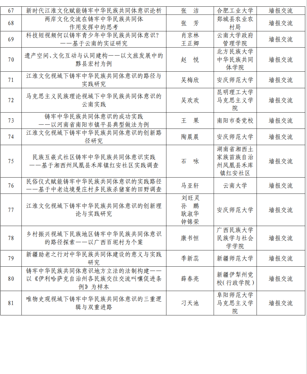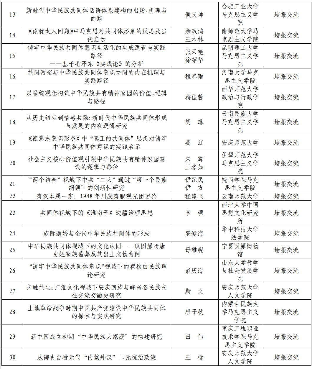 (三)入选专题报告、墙报交流的文章将汇编入《安徽省铸牢中华民族共同体意识学术研讨会论文摘要汇编》。