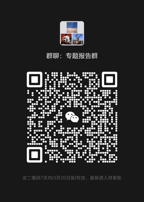 (一)已录用专题报告稿件的第一作者或通讯作者请扫描下方“专题报告”二维码进入微信群,进群后备注“论文序号+姓名+单位”。