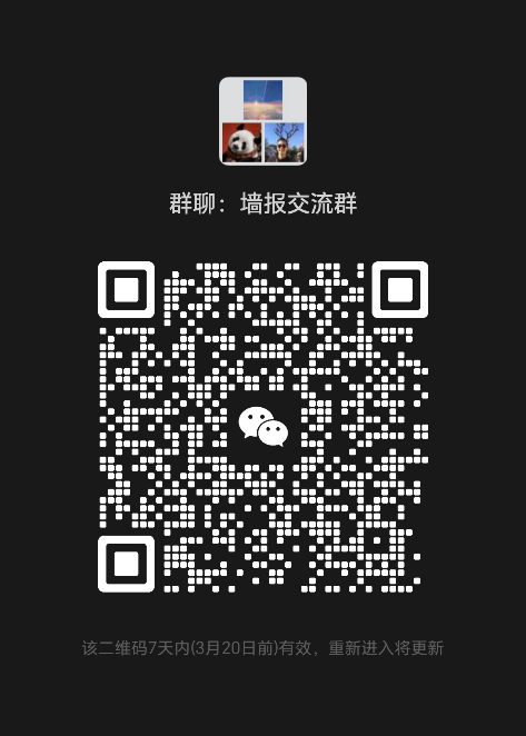 (二)已录用墙报交流稿件的第一作者或通讯作者请扫描下方“墙报交流”二维码进入微信群,进群后备注“论文序号+姓名+单位”。(注:墙报制作和展架由会务组统一完成,内容如有改动请进群后及时与会务人员联系。)