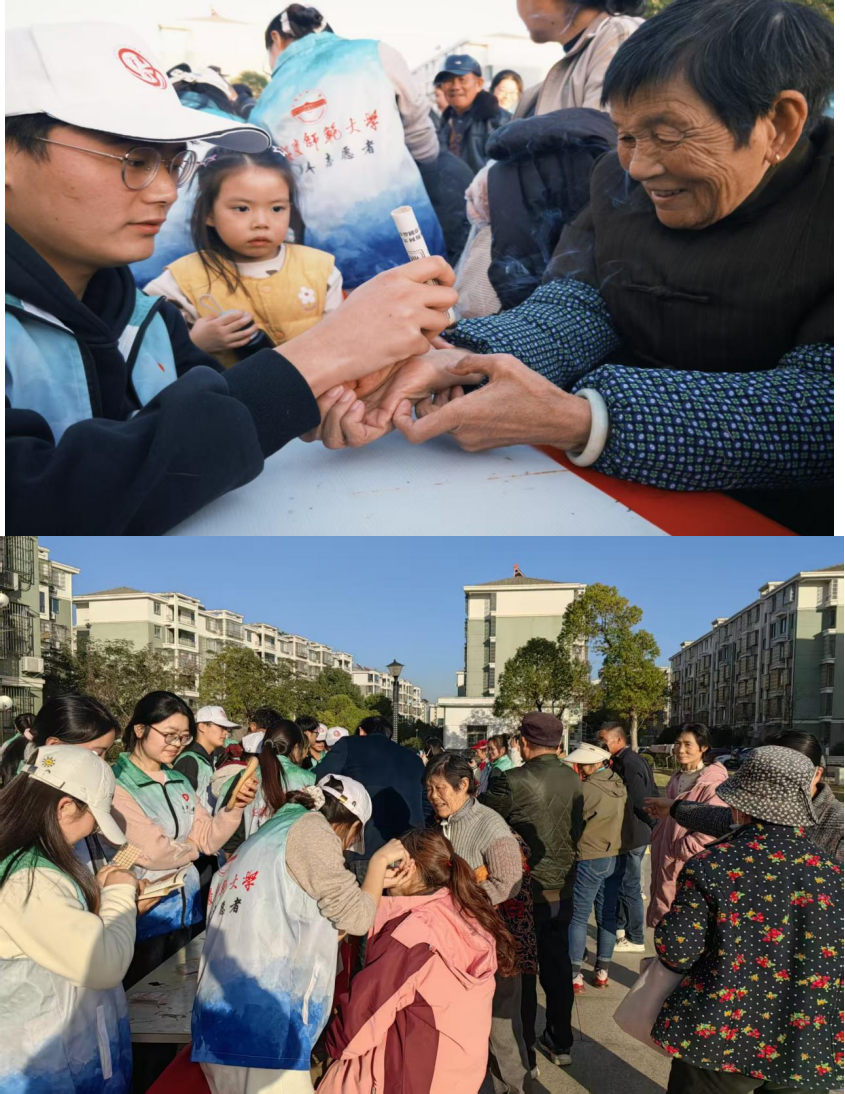 2025年11月26日下午,宜秀区大龙山镇南山苑社区暖意融融,安庆师范大学32名志愿者走进这里,为社区老人与孩童送去健康服务与暖心关怀。本次活动由大学生传统体育保健协会指导老师高云带队,体育学院学生会、武术协会共同参与。